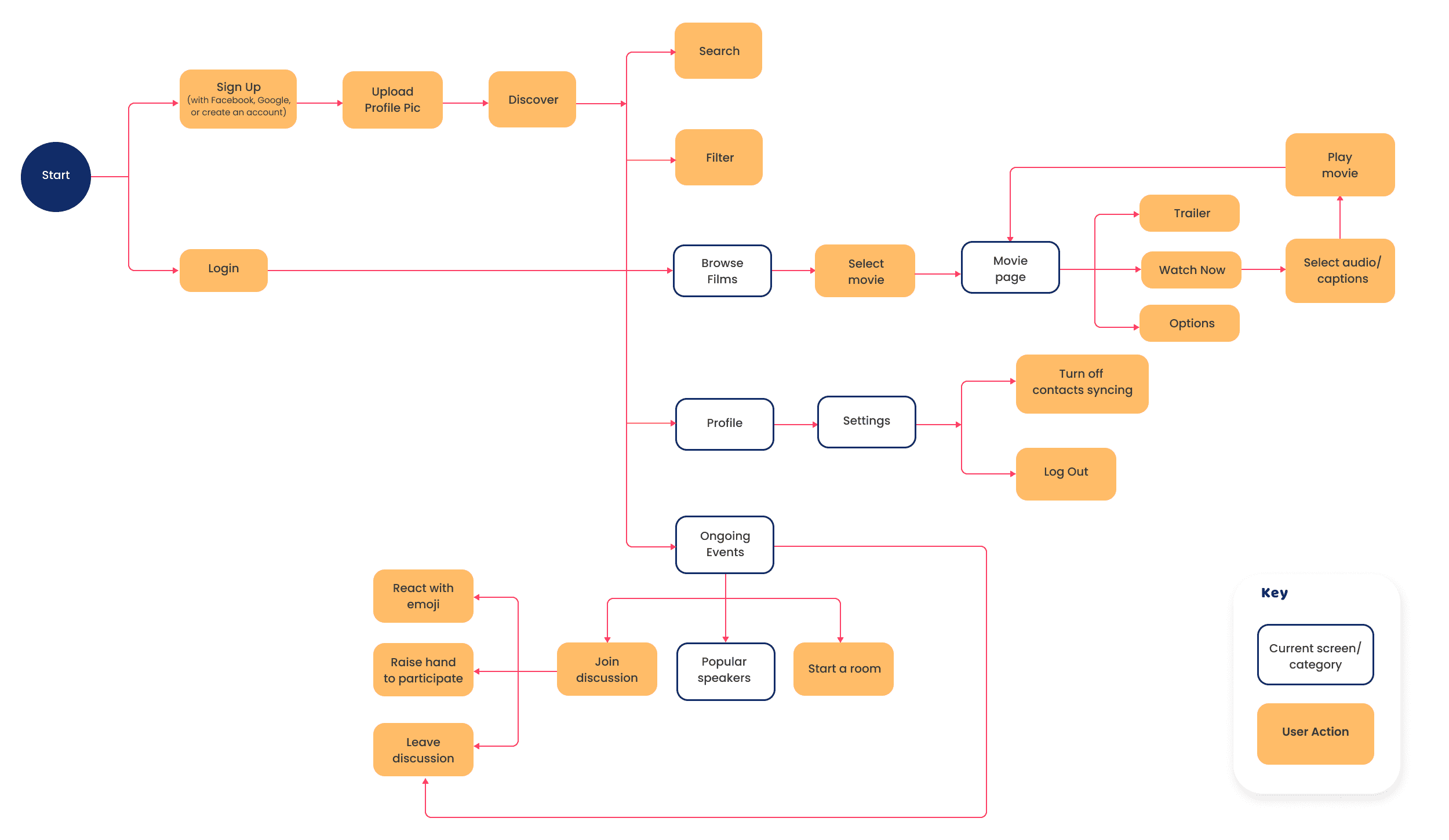 By learning how people navigate through other streaming services, we can focus on how can we make it intuitive and find what’s essential to include in the final design in order to meet the user needs. And by creating new approaches on the onboarding, ost importantly support diverse cinema, as well as existing and upcoming international, foreign, and independent films. Then, making them available for everyone, no matter what background you’re from.