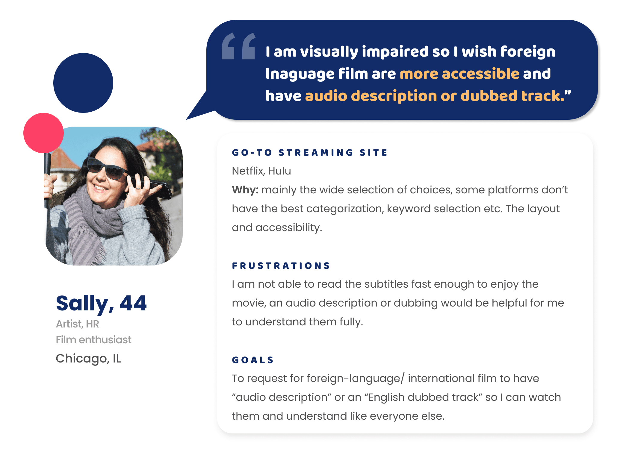 There are many streaming services people use to watch movies on, but some of them are also lacking in accessibility, diversity, and reliability for customers. How can we elevate international films and make it accessible for English speakers and those who are visually and hearing impaired?