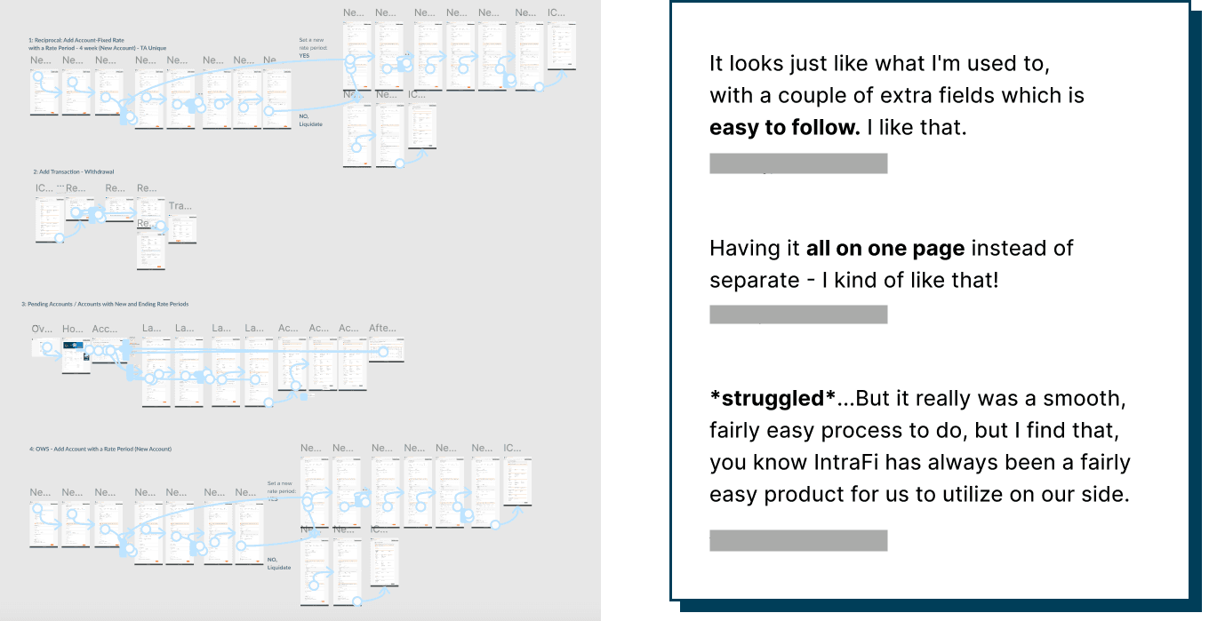 During the initial user testing for the fixed-rate feature—another project I took on when a designer left the team—I created prototypes in Figma and observed how bankers interacted with them. I actively listened to their feedback, noting their issues and pain points. Their valuable insights guided me in creating improvements and additions to the design system that I might have otherwise missed.